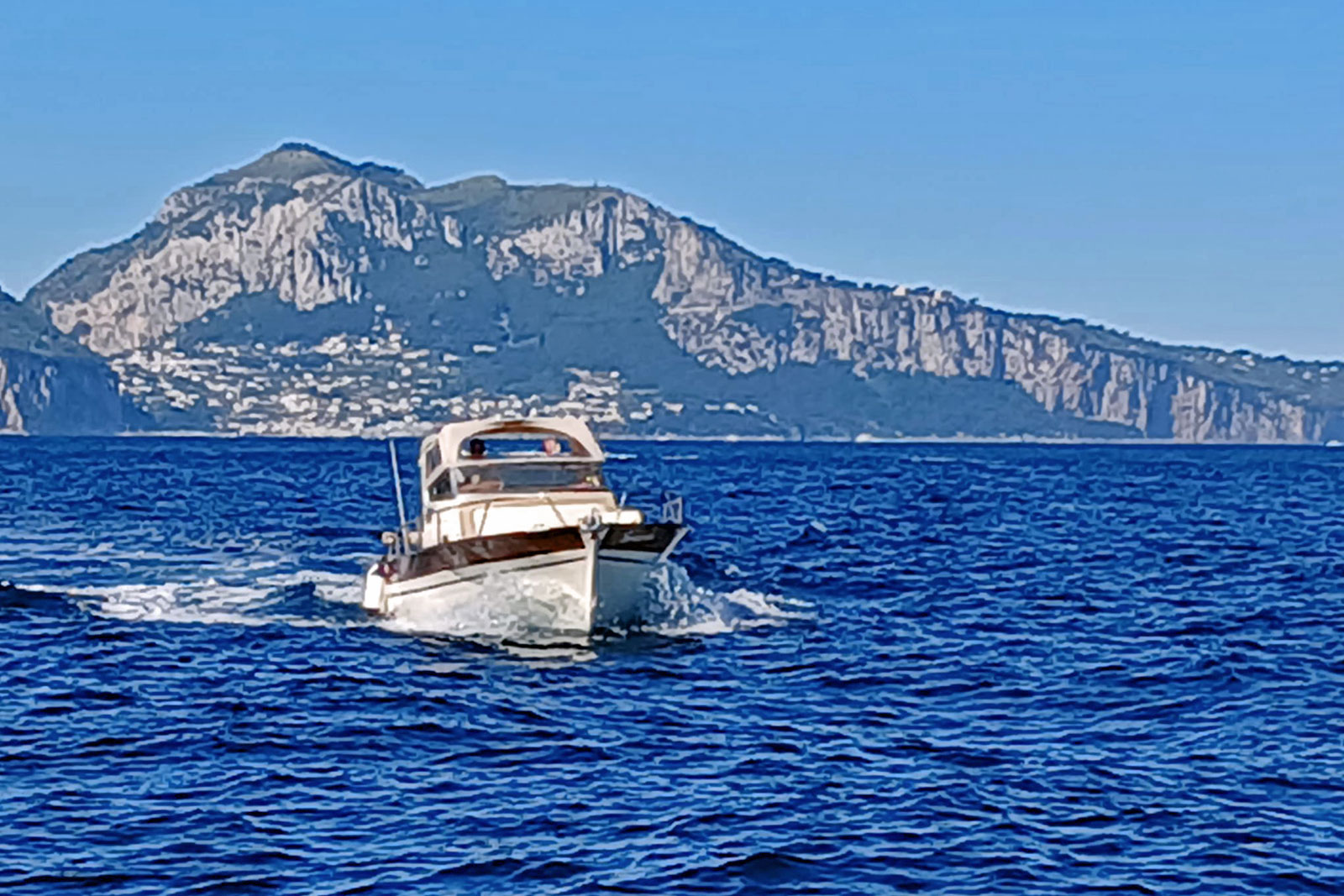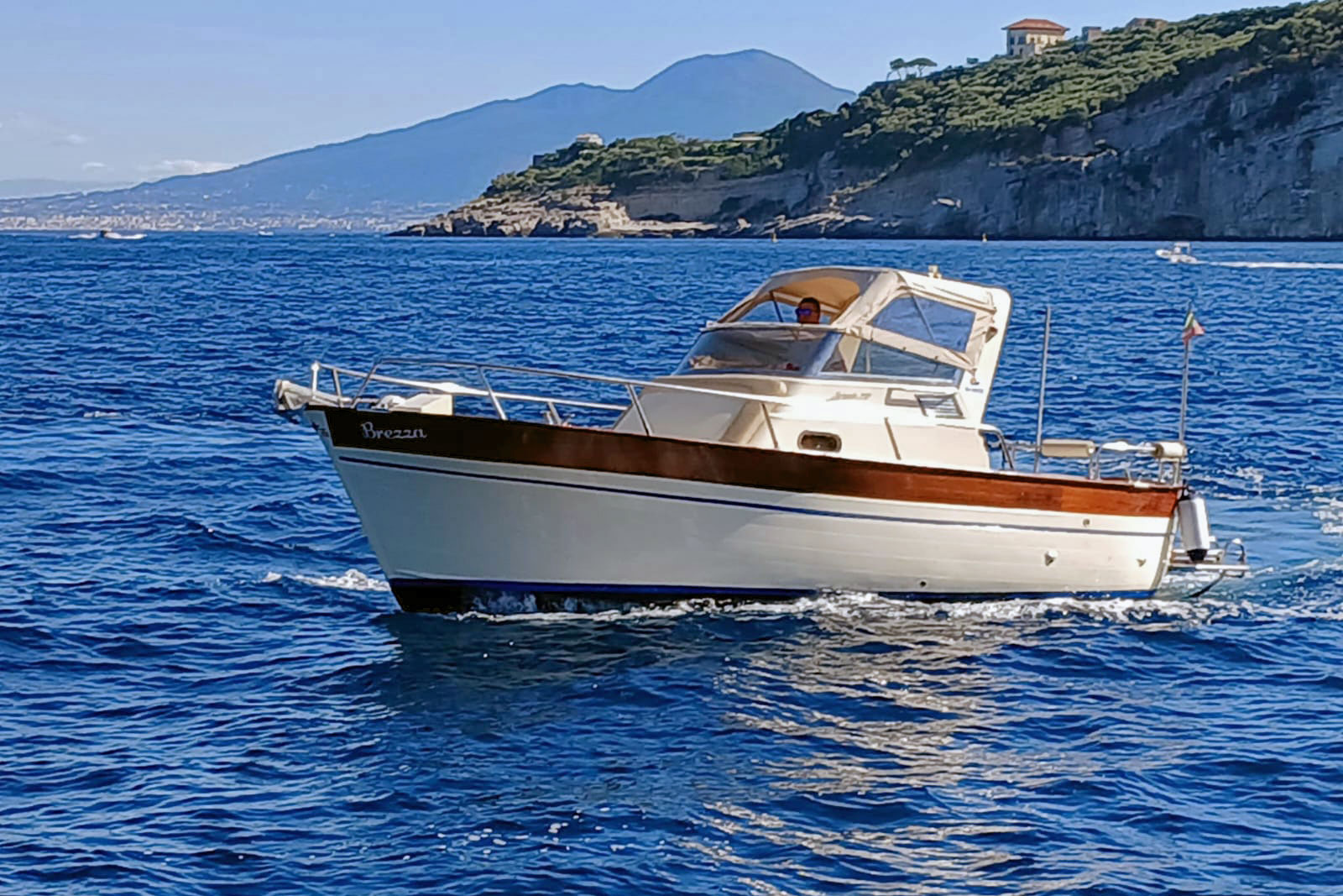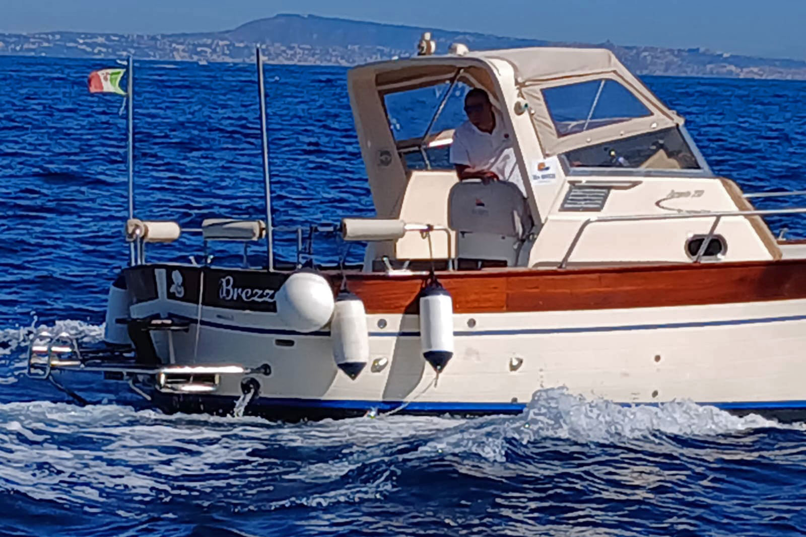 A bordo del nostro Gozzo Tecnonaautica Jeranto 7.50 potrai vivere un’esperienza autentica e confortevole tra le acque della Penisola Sorrentina e della Costiera Amalfitana. La barca è dotata di cabina con bagno separato, ampio prendisole a prua per rilassarsi al sole e una comoda seduta a poppa con tendalino ombreggiante, ideale per godersi la navigazione anche nelle ore più calde.